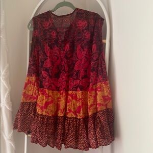 This vibrant and breezy sleeveless top features a stunning floral design in red and orange hues. Perfect for adding a pop of color to your wardrobe.