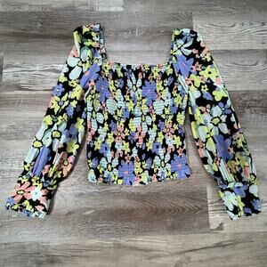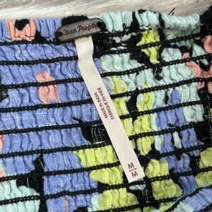 Free People Floral Smocked Puff Sleeve Top Multicolor Boho M