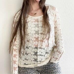 Free People Floral Textured Sheer Lace Pullover top
