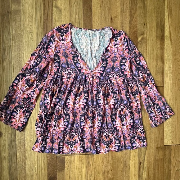 Free People Floral Top Tunic Blouse Women’s Sz‎ S Boho Artsy Festival 70’s