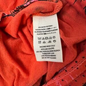 Gorgeous Free People blouse featuring a vibrant red-orange floral top. Designed with sweet off-shoulder neckline, dramatic bell sleeves, flowy silhouette and wrap style and keyhole neckline.