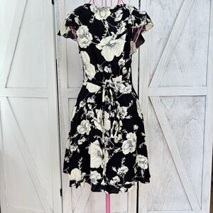 Free People Floral Wrap Dress Women’s Small Black Cream Boho Cottagecore