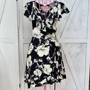 Free People Floral Ruffle Wrap Dress Women’s Small Black Cream Boho Cottagecore Fairy