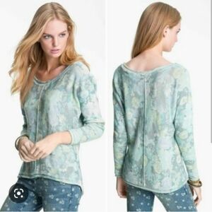 Women's size medium. Preowned in good condition. Pale antique floral design Flower Bomb sweater from Free People. Relaxed fit. Rolled hem. Wool Blend.