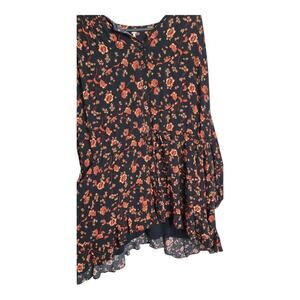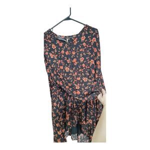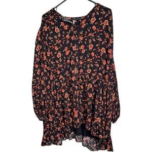 Free People Flower Fields Mini Dress Black Red Orange Floral Print Tunic S