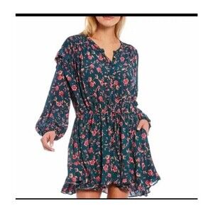 Free People Flower Fields Mini Dress Small Emerald Combo Fully Lined Loose Fit