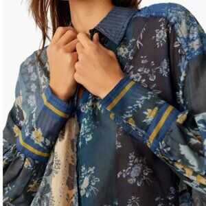 Free People Flower Patch Mixed Print Cotton Button-Up Shirt Size Small