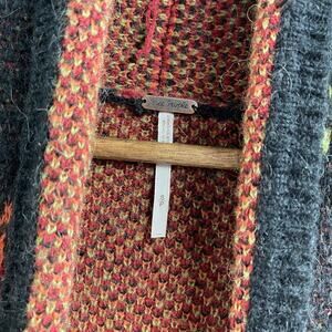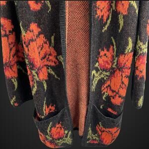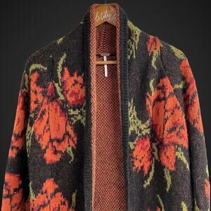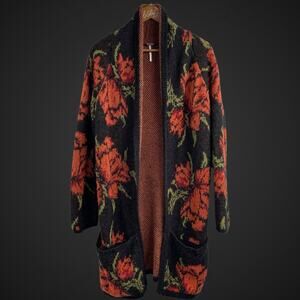 Free People Flower Power Sweater Longline Cardigan Knitted Roses Black Red Small