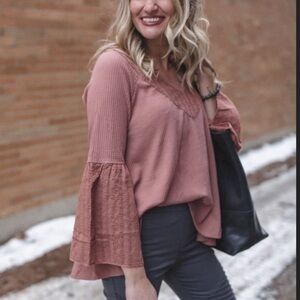 Free People Flowy Crochet Bell Sleeve Boho Tunic
