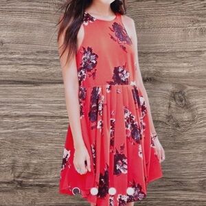 Free People ‘Flutter By Floral’ Red & Black Patterned Mini Skater Dress Size 0