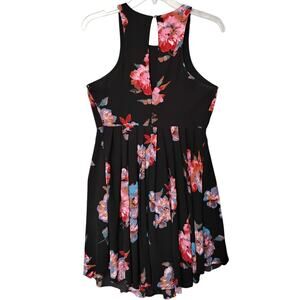 Free People Flutterby Fit and Flare Dress Size 2 Black - Pink Floral Print Lined