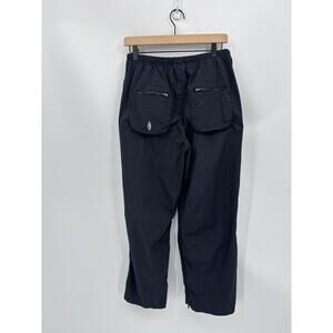 Excellent condition Free People FP Movement Fly By Night pants in classic black. Lightweight, water-resistant polyamide with a relaxed straight-leg silhouette and mid-rise elastic waistband with adjustable bungee drawcord for all-day comfort. Cargo-inspired pockets (including zippered back pockets) add functional utility, while the easy pull-on style makes them perfect for travel, errands, athleisure looks, or outdoor adventures.