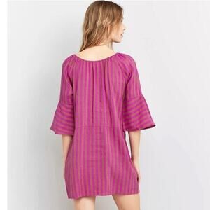 Free People Folk Town Linen Blend Purple & Tan Striped Mini Dress Size S