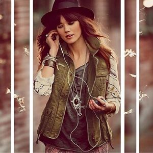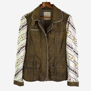 Free People Follow Your Heart Cargo Utility Jacket Fatigue Geo Sleeves Size M