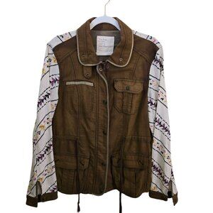 Free People Follow Your Heart Utility Jacket Brown Printed Sleeves Size L