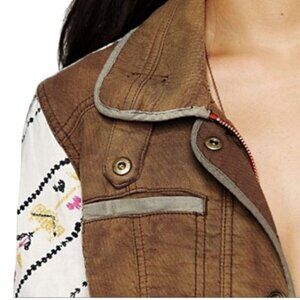 Free People Follow Your Heart Utility Jacket Brown Printed Sleeves Size L