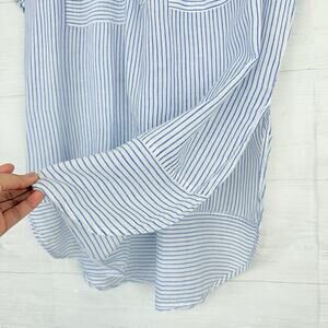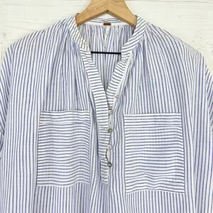 Free People For Keeps Oversized Tunic Top XS Blue Striped Linen Coastal Boho