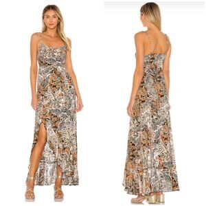 Free People Forever Yours Smocked Slip Maxi Dress Small Brown Black Floral Boho