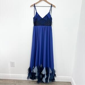 Free People Forget Me Not Blue Chiffon Maxi Dress Sleeveless NWT Size 4