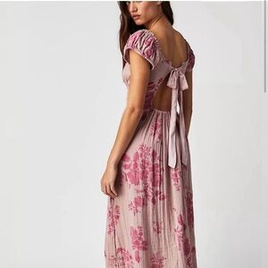 So sweet and special in a staple floral print, this goes-with-anything midi dress is featured in a drapey, relaxed fit with defined bust, capped style sleeves, defined tie at back, and smocking at center for a forever flattering fit.