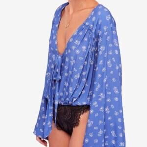 Free People Forties Printed Bell-Sleeve Bodysuit Medium