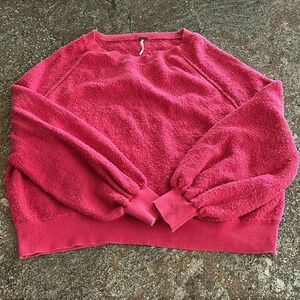 Free People Found My Friend Pullover Pink Fuzzy Soft Crewneck Sweatshirt Small