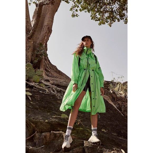 Free People Fp Movement Aurora Maxi Windbreaker Parka Jacket Neon Lime XS