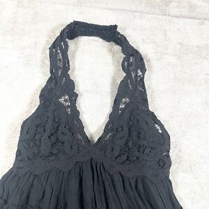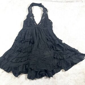 Free People Fp One Adella Babydoll Slip V Neck Black Lace Ruffle Dress Small