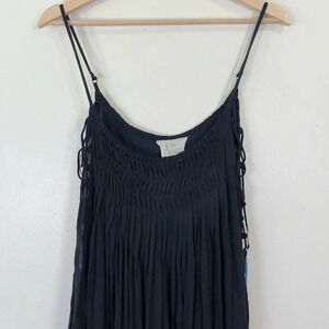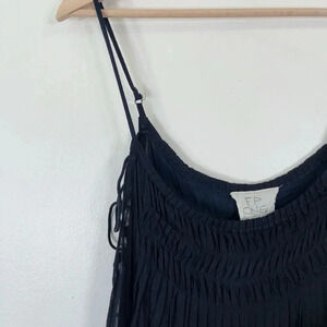 Free People Fp One Black Imperial Palm Pintuck Printed Boho Dress