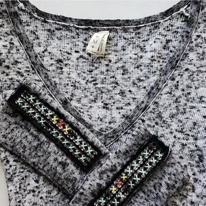 Highly sought after and hard to find, this unicorn Free People sweater features sequin embellished cuffs and a soft freckled pattern throughout. It's a stretchy, lightweight sweater with a V-neckline and perfect for fall, winter, or spring. Priced high to auto-deny offers.