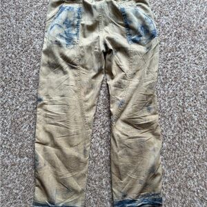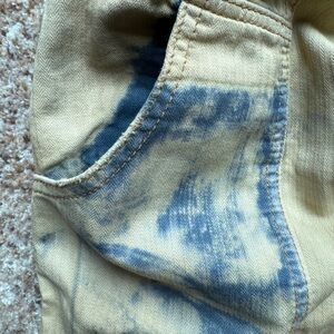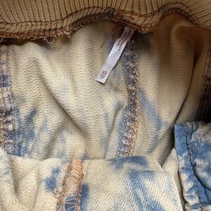 Free People Freddie Distressed Pants Tan & Blue Tie Dye Print Size Xs