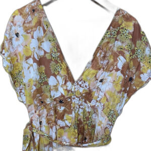 Free People Freddy Mini Dress Floral Print V-Neck Tie Cocoa Tan Women's Size M