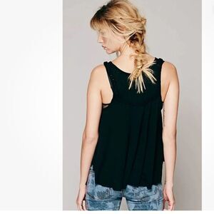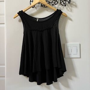 Free People Free Falling Drippy Black Braided Tank Top Sleeveless Shirt XS