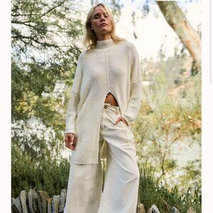 The Free People Beach Coco Tunic Sweater is a rare, super oversized piece featuring a mock neck, dolman sleeves, and a huge front slit, perfect for casual beach days or lounging. Super rare Size and color