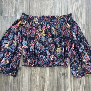 Free People Free Spirit Off The Shoulder Top Size Small Floral Bell Sleeve