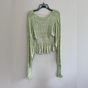 Free People Free Spirit Smocked Knit Peplum Sweater Crop Top in Seafoam (light) Green