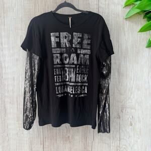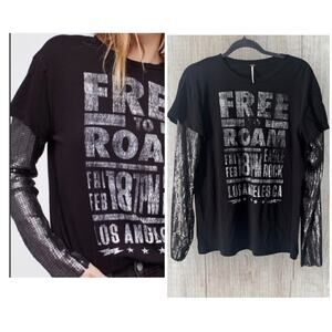 Free People Free to Roam black tshirt with silver sequin long sleeves, medium