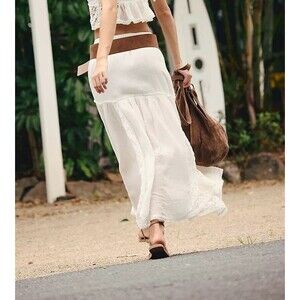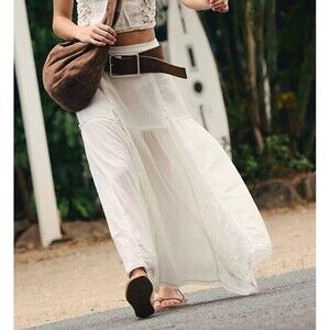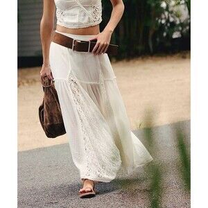 Free People Free-Est Aimee Maxi Skirt Sheer Lace Pull-on Tiered Flowy XS 283033