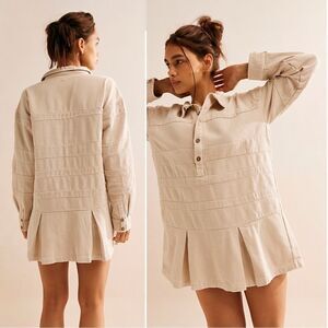 Free People Free-Est Checkin' Mini Dress Cotton Woven Natural Size S NEW