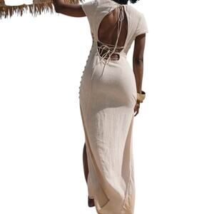 Keywords: Free People Free-est Baby Tee Maxi Dress, Womens, Bohemian, Boho, Maxi, Beige, Beachy, Short Sleeve, Open Back, Lightweight, Tie Back, Summer, Vacation, Resort, Side Slit,