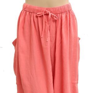 Guaranteed 100% Authentic & Never Before Worn Description: * Elastic waistband * Drawstring detail * Lightweight, effortless design * Dropped side pockets for added dimension * harem-inspired silhouette Measurements/item Details * * Size - Extra Large * Waist - 16" across (Laying flat) and 17" across (Stretched) * Hips - 26" across (Laying Flat) * Length -38" approx * Inseam - 21" approx * Color - coral color * Fabric - 81% Viscose, 19% Linen Please note: This Item Is New Without Tags.