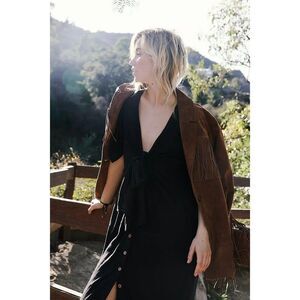 Free People Free-est Vintage Summer Midi Dress Buttondown Black Ruched S 283032