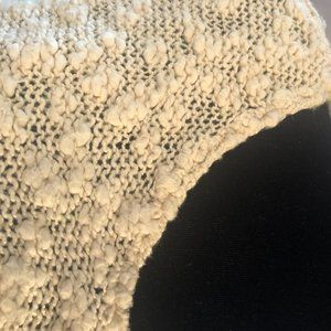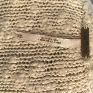 Textured knit on top with white and blues stripes and beautiful open knit at sides. Wide neckline flatter the collarbone.