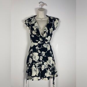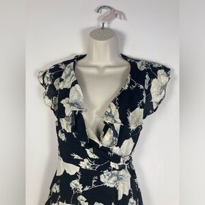Free People French Quarter Ruffle Wrap Dress Onyx Combo XS NWT