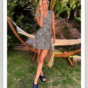 Free People French Quarter Wrap Mini Dress in Black Brown Combo Sz. Small