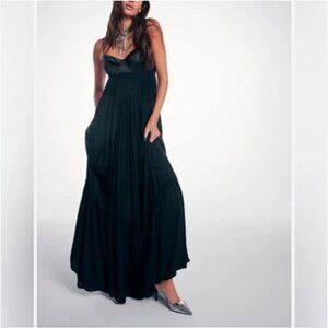 Free People Freya Maxi Black Silky Dress size M