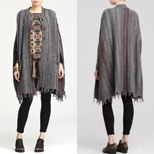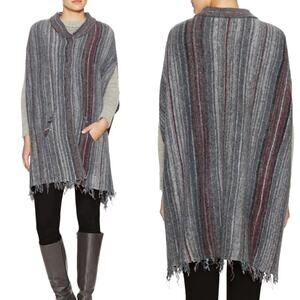 Free People Fringe Boho Blanket Poncho Sweater Duster Wrap Charcoal Gray XS/S