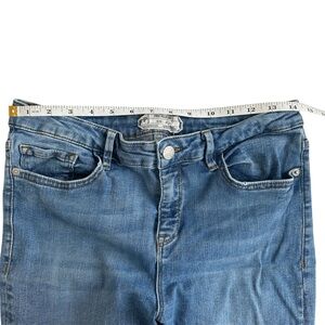 Free People Fringe Crop Jeans Medium Wash Size 31 Cropped Raw Hem Straight Leg