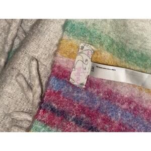 Free People Fringe Throw Blanket Ivory Multi Striped Retro Boho Western 60 X 54