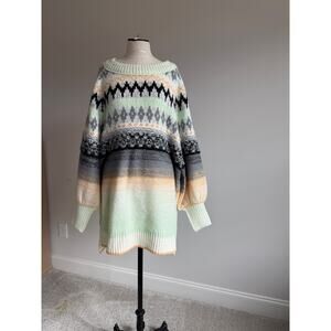 Excellent preowned condition. This sweater is a great addition to your fall and winter wardrobe. You can wear it as a sweater or as a sweater dress. See photos for measurements so you'll know where it will fall on you.